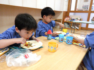 こいのぼりを作ったよ! たんぽぽ たんぽぽさん初めての制作! こいのぼりを作りました ・ ・ まずは目をかいてあげよう! 「なにいろにしようかな~♪」 好きな色を選んで・・・ キャップはペンのおしりにつけて・・・ ぐるぐるスタート! 次は背中に模様をつけてあげよう とっても素敵なこいのぼりが出来たね ・ ・ みんなもこいのぼりのように いっぱいご飯食べて 元気に大きくなりますように
